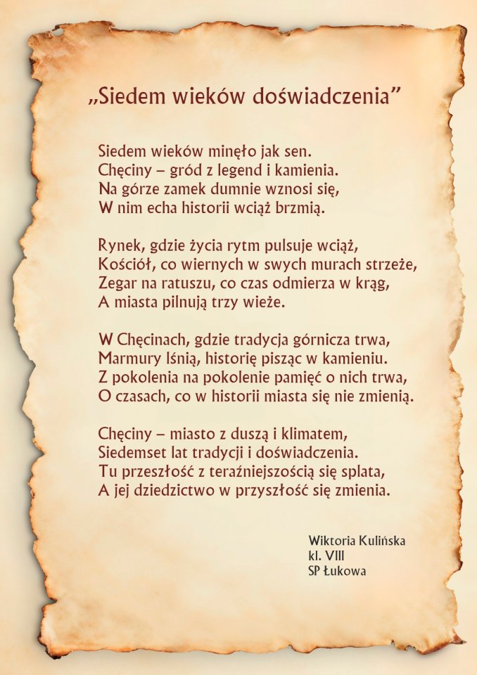 W związku ze zbliżającym się końcem roku jubileuszowego 700-lecia Nadania Praw Miejskich Chęcinom prezentujemy Państwu prace konkursowe.