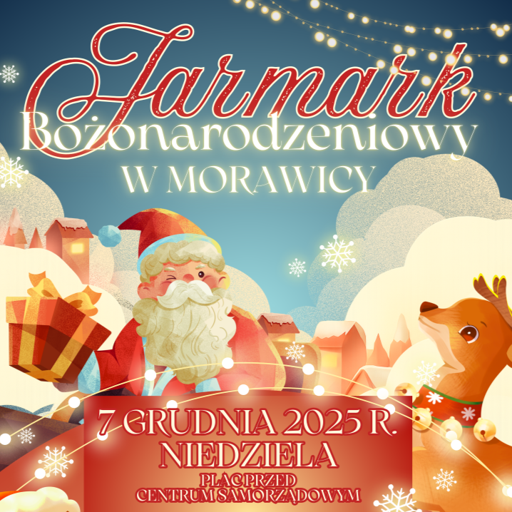 Burmistrza Miasta i Gminy Morawica oraz Samorządowe Centrum Kultury i Biblioteka serdecznie zapraszają na IV Jarmark Bożonarodzeniowy połączony z Mikołajkami. Przed nami wyjątkowe, rodzinne i pełne magii świąt wydarzenie, podczas którego nie zabraknie atrakcji dla najmłodszych i dorosłych. Jarmark odbędzie się 7 grudnia (niedziela) o godz. 14:00 na placu przed Centrum Samorządowym w Morawicy, a do wspólnej zabawy zaprosi gość specjalny – Św. Mikołaj.