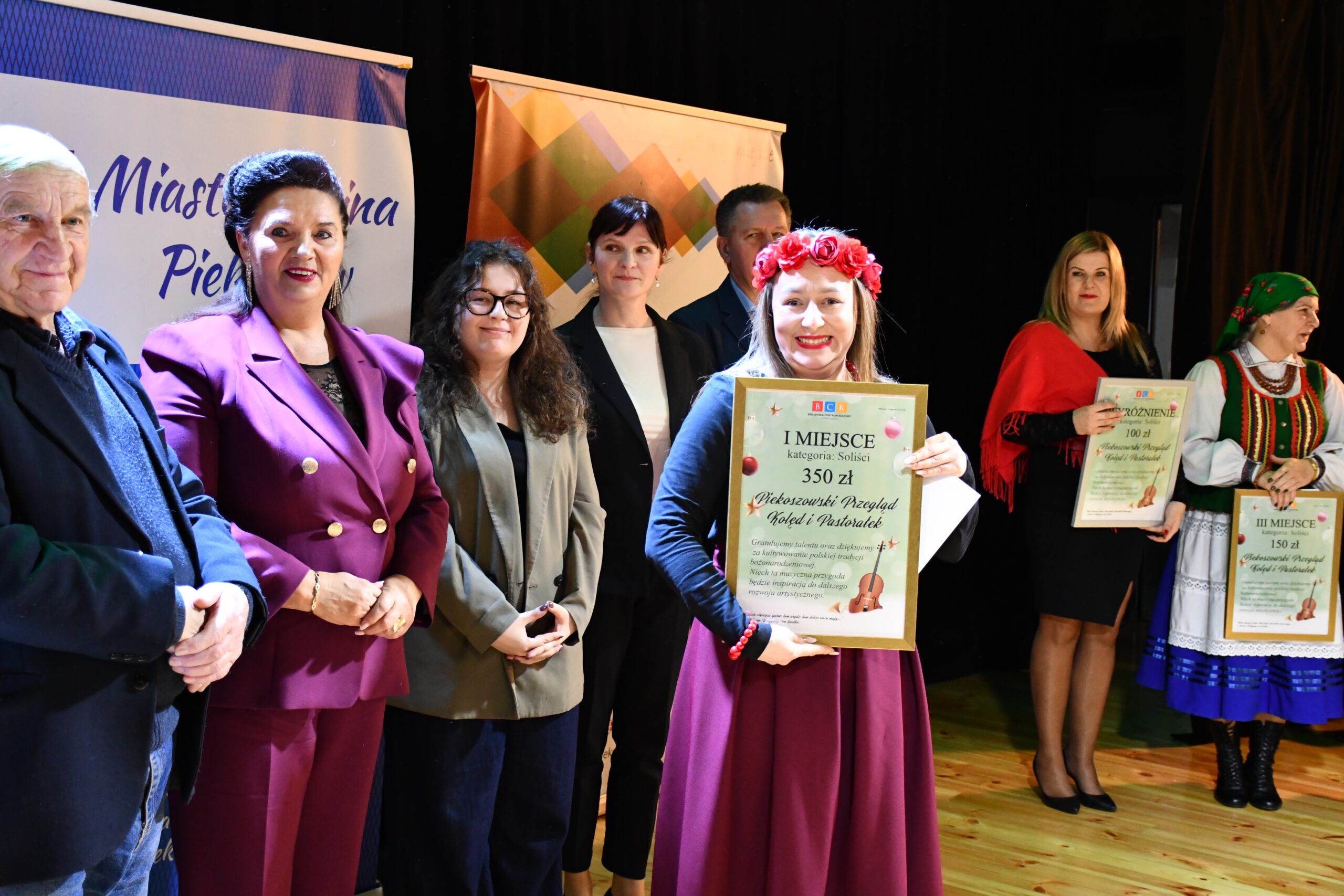 O znaczeniu takich inicjatyw mówiła burmistrz miasta i gminy Piekoszów Teresa Jakubowska. – Wspólne śpiewanie kolęd to coś wyjątkowego. To moment, w którym zwalniamy, jesteśmy razem i wracamy do tego, co najważniejsze, czyli do tradycji, bliskości i wspólnoty. Kolędowanie od zawsze było sposobem na bycie razem i przekazywanie wartości, które kształtują nasza tożsamość – mówiła burmistrz Teresa Jakubowska, która podziękowała organizatorom konkursu, dyrektor BCK Annie Wilk oraz jej zastępcy Krzysztof Szymkiewicz, a także wszystkim artystom. – Dzięki wam w tym codziennym pędzie mogliśmy na chwilę się zatrzymać, wspólnie kolędować, integrować się i poczuć prawdziwą magię tego czasu – dodała burmistrz Teresa Jakubowska.