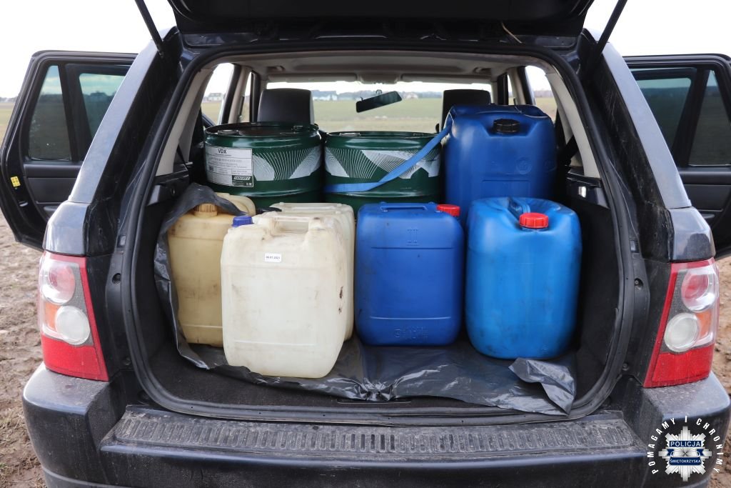 Jak się okazało, do pojazdu zamontowane były tablice rejestracyjne nieprzypisane do niego. W pojeździe znajdowali się mężczyźni narodowości ukraińskiej w wieku 34 i 38 lat. W trakcie sprawdzenia okazało się, że jeden z nich był poszukiwany celem odbycia kary 6 miesięcy pozbawienia wolności za przestępstwo kradzieży. W toku dalszych czynności policjanci ujawnili w pojeździe kilka zbiorników wypełnionych paliwem o łącznej pojemności około 300 litrów, pochodzącym prawdopodobnie z kradzieży, a także kolejne tablice rejestracyjne pochodzące z innego pojazdu, które zostały wykorzystane do innej kradzieży paliwa na terenie województwa łódzkiego.