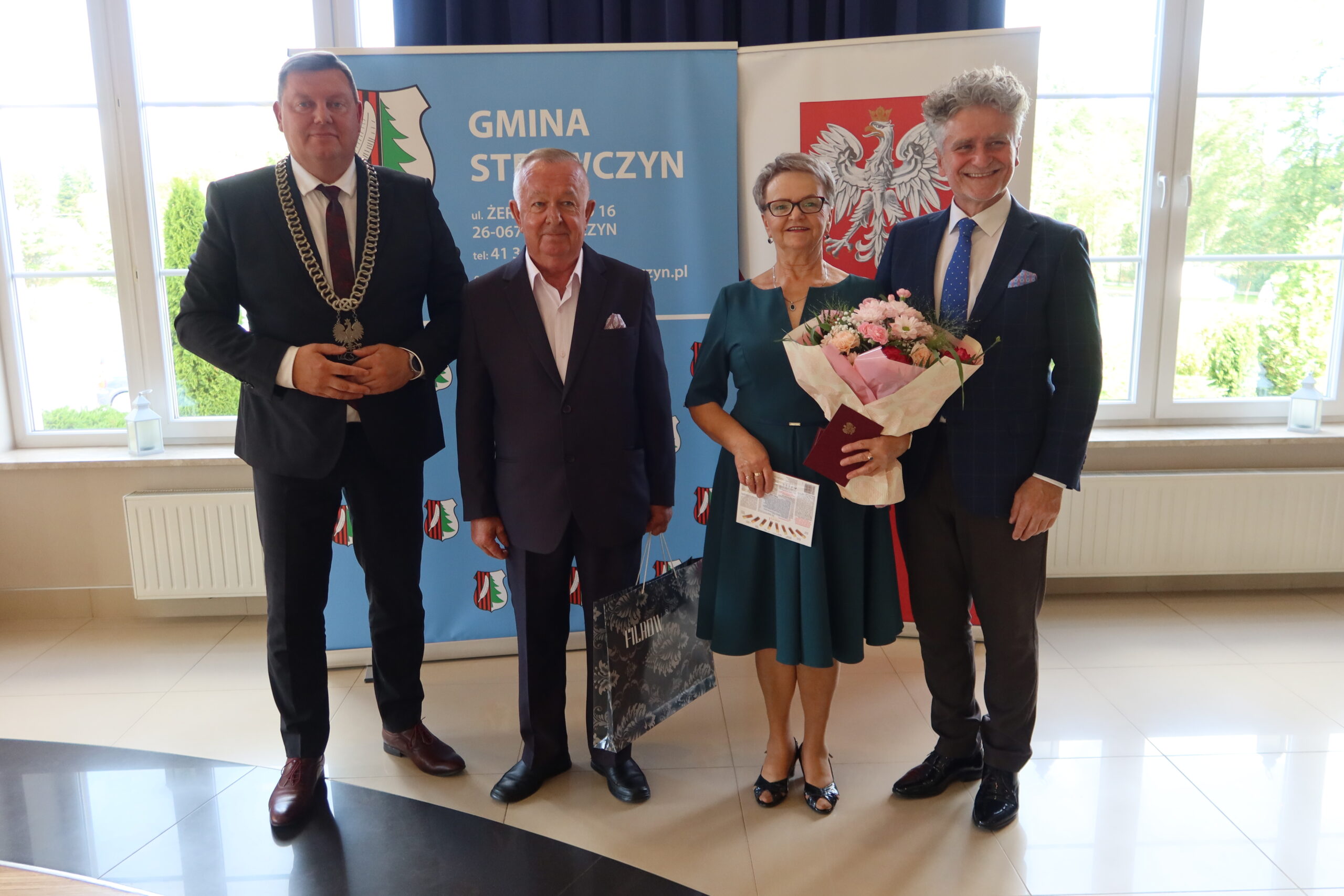 Podczas uroczystości nie zabrakło osobistych historii par, które podzieliły się wspomnieniami ze wspólnego życia. Halina i Tadeusz Picheta ze Strawczyna opowiadali o swojej młodzieńczej miłości i wspólnych marzeniach. – Nasza wspólna historia zaczęła się w Strawczynie, gdzie oboje się wychowaliśmy. Znaliśmy się od dziecka, chodziliśmy do tej samej szkoły i do tego samego kościoła. Później spotykaliśmy się w miejscowym klubie, gdzie toczyło się życie młodzieży, pełne przyjaźni, tańców i wspólnej zabawy. Z czasem nasza relacja przerodziła się w miłość. Kiedy Tadeusz wrócił z wojska, wiedzieliśmy już, że chcemy iść przez życie razem. Sakramentalne „tak” wypowiedzieliśmy w kościele parafialnym w Strawczynie. Pierwszym naszym celem było założenie rodziny i wybudowanie domu. Udało się. Wychowaliśmy dwoje dzieci, które skończyły studia i z których jesteśmy bardzo dumni. Największą radość sprawiają nam jednak nasze wnuczki – Hania i Maja. To one wnoszą do naszego życia ogrom miłości i ciepła. Nie ma jednej recepty na udane małżeństwo, ale z pewnością najważniejsze są wzajemna troska, wspólne decyzje i umiejętność przymknięcia oka na drobne rzeczy. Małżeństwo jest siłą, która pozwala przetrwać wszystko – mówili zgodnie Halina i Tadeusz Picheta.