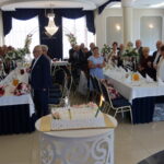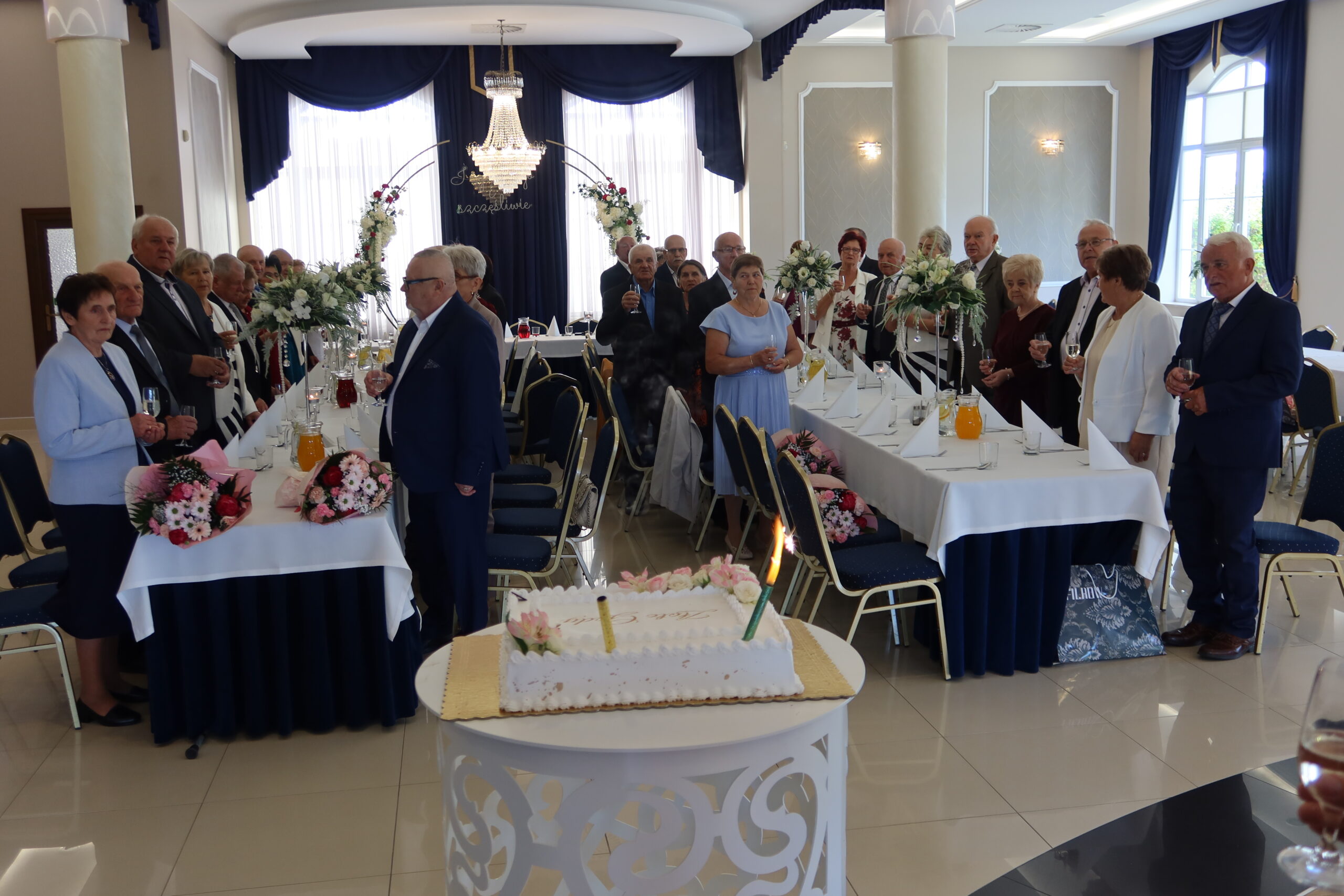 Po części oficjalnej przyszedł czas na mniej formalne spotkanie. Jubilaci i zaproszeni goście zasiedli do wspólnego obiadu, kosztowali okazałego tortu przygotowanego specjalnie na tę okazję, wznosili toasty i odśpiewali gromkie „Sto lat!”. – Dziękujemy wójtowi, że nas tak docenia. Sceneria tego miejsca jest niezwykła – dziękowali zgodnie jubilaci.