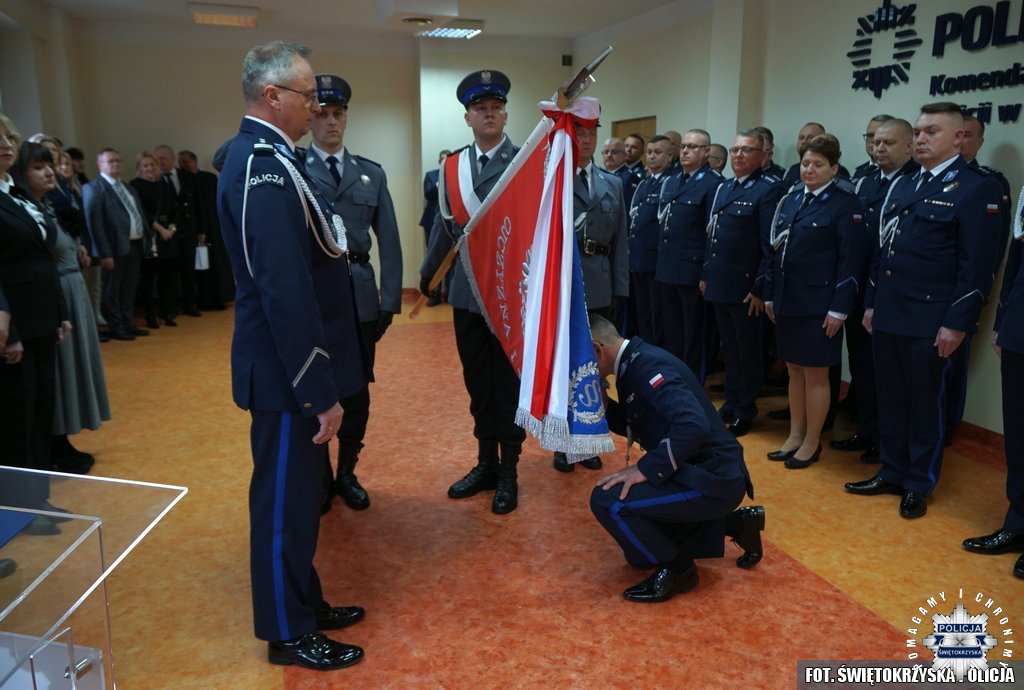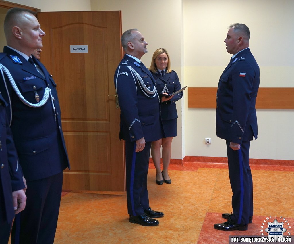 Po przywitaniu gości, przybliżeniu sylwetek i historii służby mł. insp. Wojciecha Szymczaka i mł. insp. Dariusza Kurosia, odczytane zostały rozkazy personalne Komendanta Wojewódzkiego Policji w Kielcach.