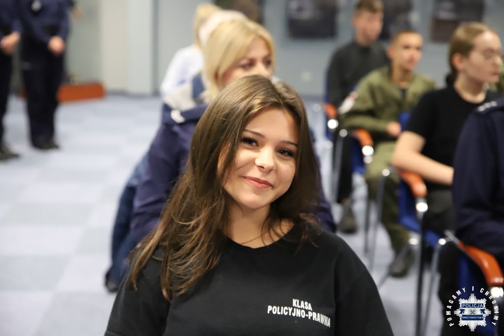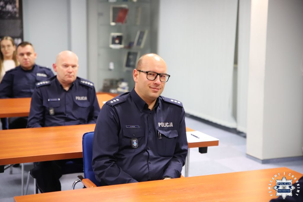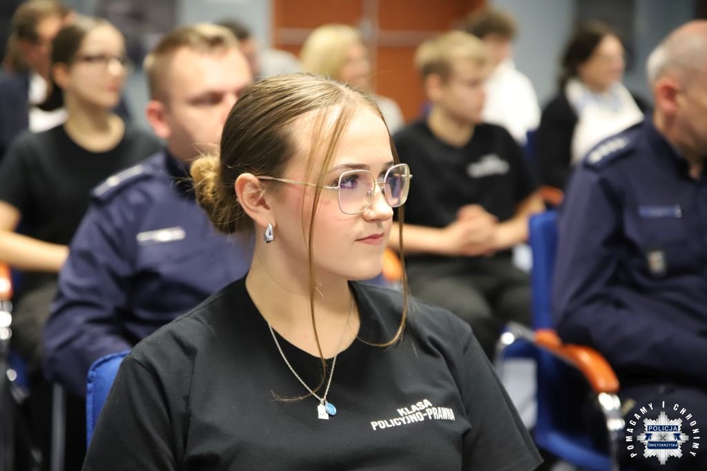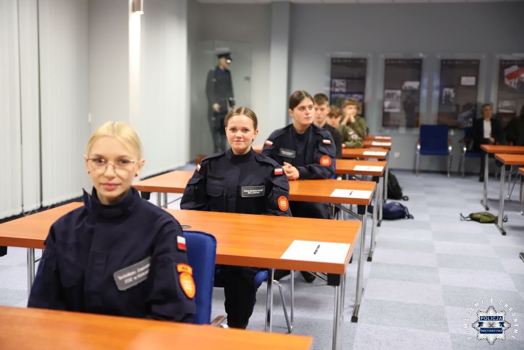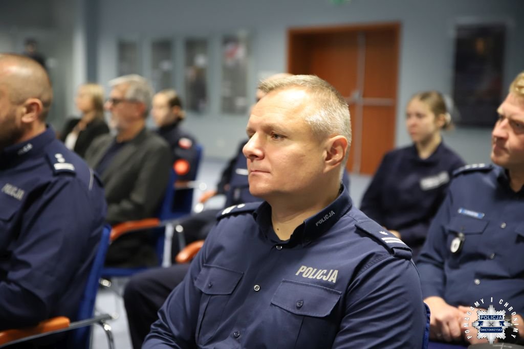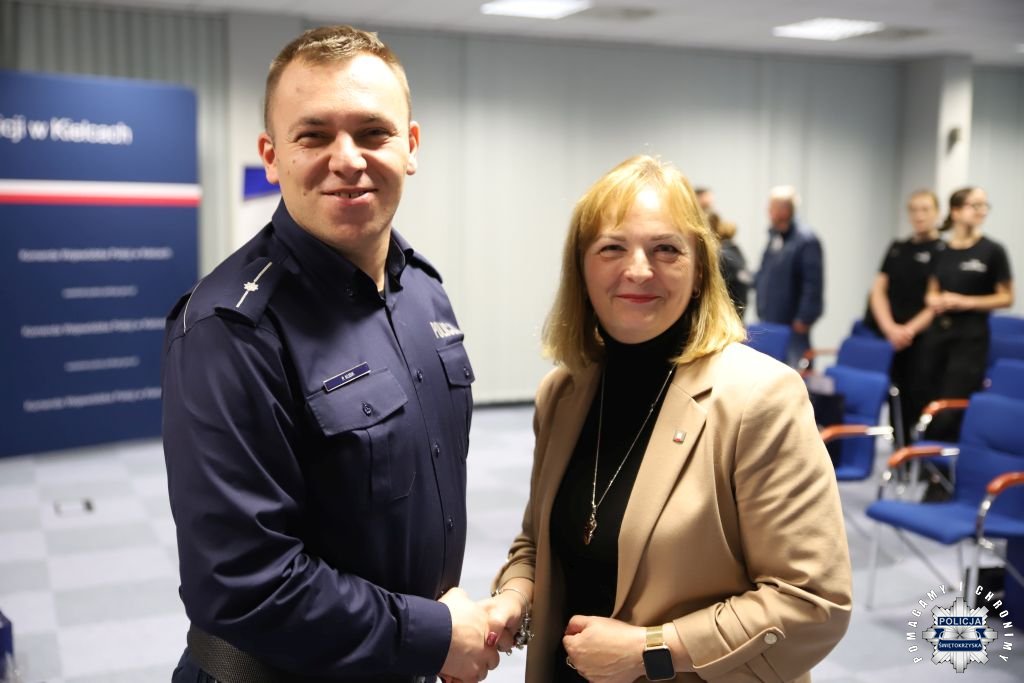 Dziś, na tej samej sali zebrali się wyróżnieni uczestnicy konkursu, przedstawiciele szkół, urzędów oraz świętokrzyskiej Policji aby podsumować rywalizację. Była to także okazja, by wspólnie uczcić tradycję formacji, która od 106 lat stoi na straży bezpieczeństwa i porządku publicznego. Podczas uroczystości obecni mogli wysłuchać wykładu o początkach obecności kobiet w Policji – w tym roku przypada setna rocznica tego pięknego jubileuszu. Tą wiedzą wykazali się najlepsi uczestnicy konkursu, wśród których znajdowali się policjanci i uczniowie.