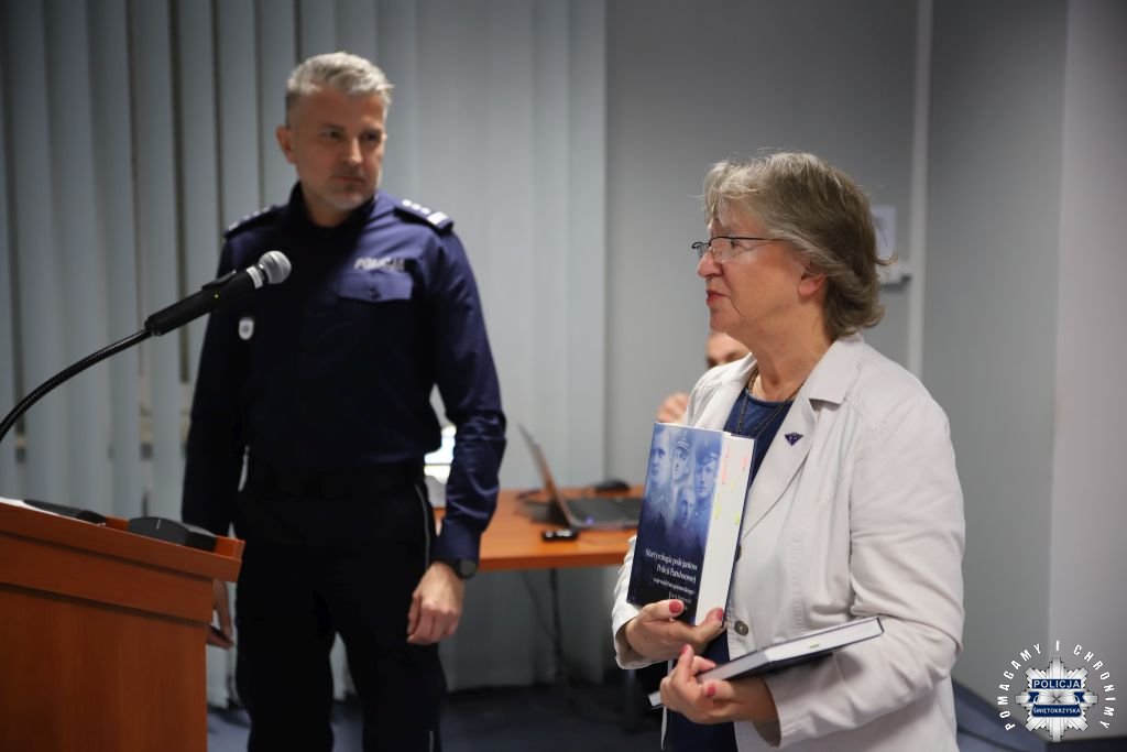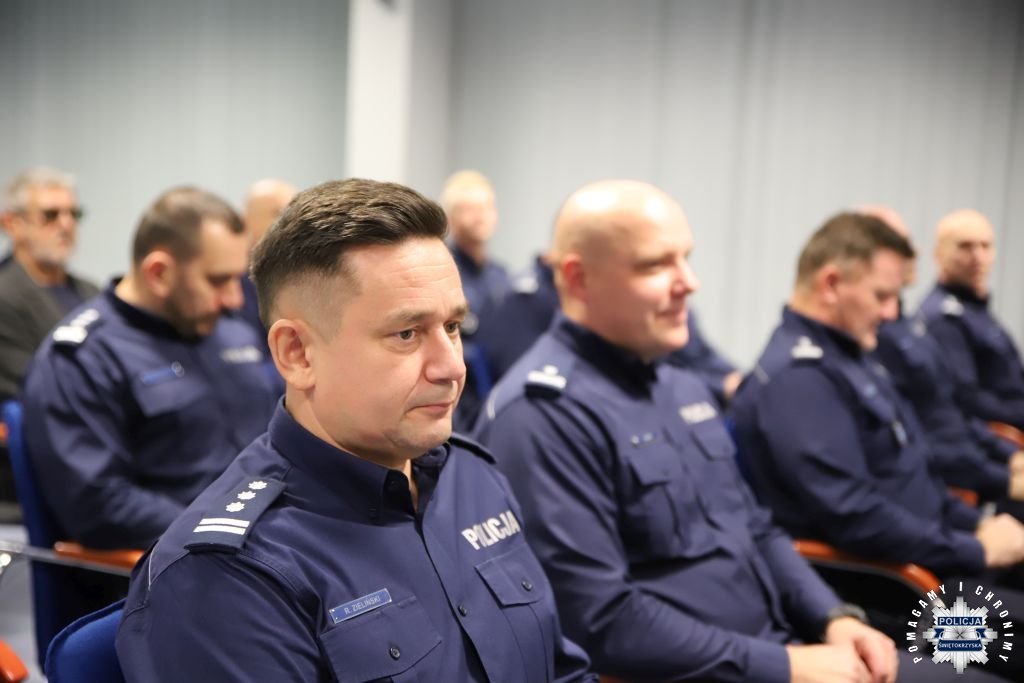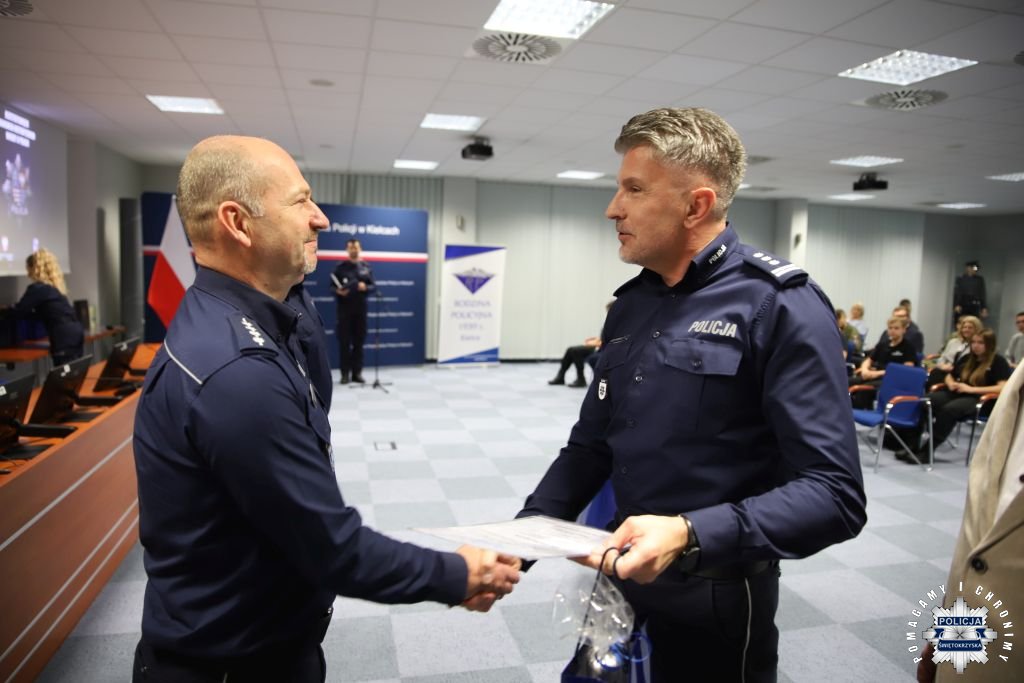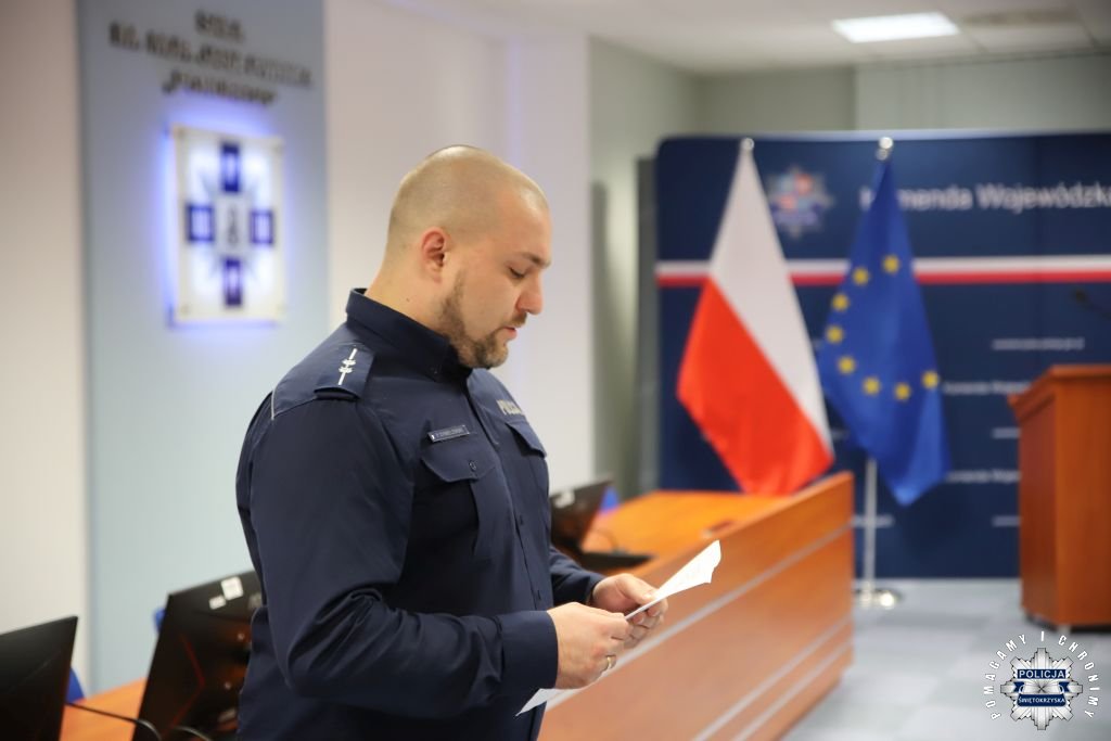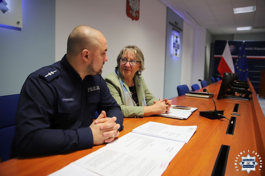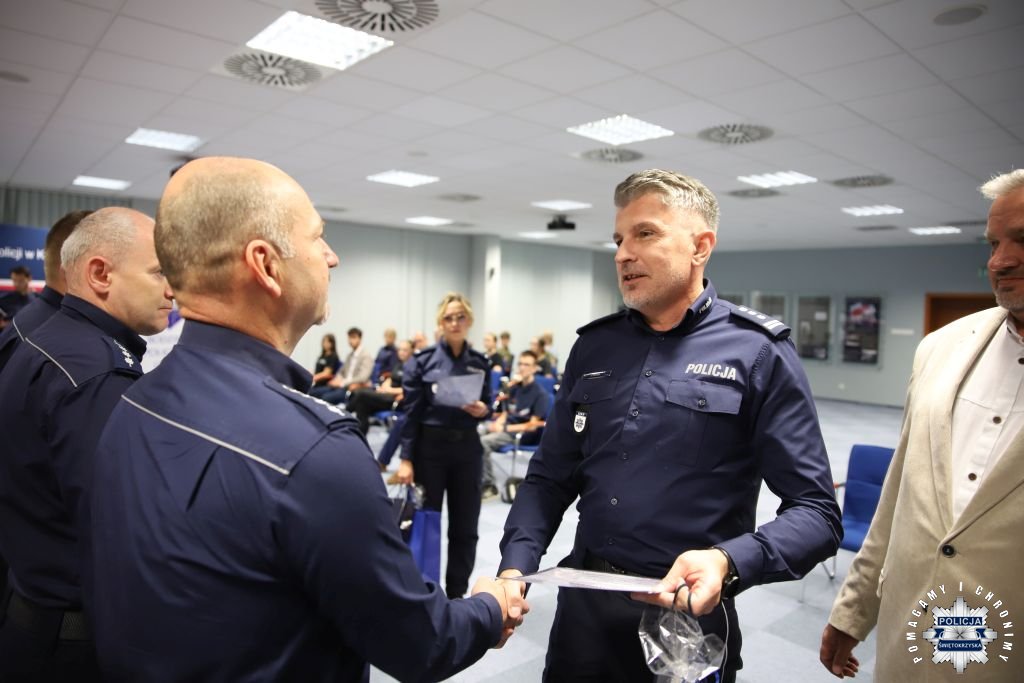 Dziś, na tej samej sali zebrali się wyróżnieni uczestnicy konkursu, przedstawiciele szkół, urzędów oraz świętokrzyskiej Policji aby podsumować rywalizację. Była to także okazja, by wspólnie uczcić tradycję formacji, która od 106 lat stoi na straży bezpieczeństwa i porządku publicznego. Podczas uroczystości obecni mogli wysłuchać wykładu o początkach obecności kobiet w Policji – w tym roku przypada setna rocznica tego pięknego jubileuszu. Tą wiedzą wykazali się najlepsi uczestnicy konkursu, wśród których znajdowali się policjanci i uczniowie.
