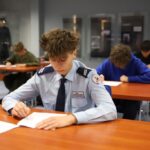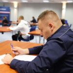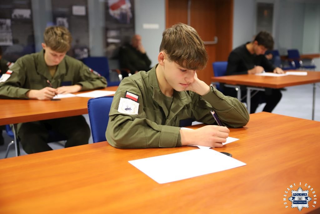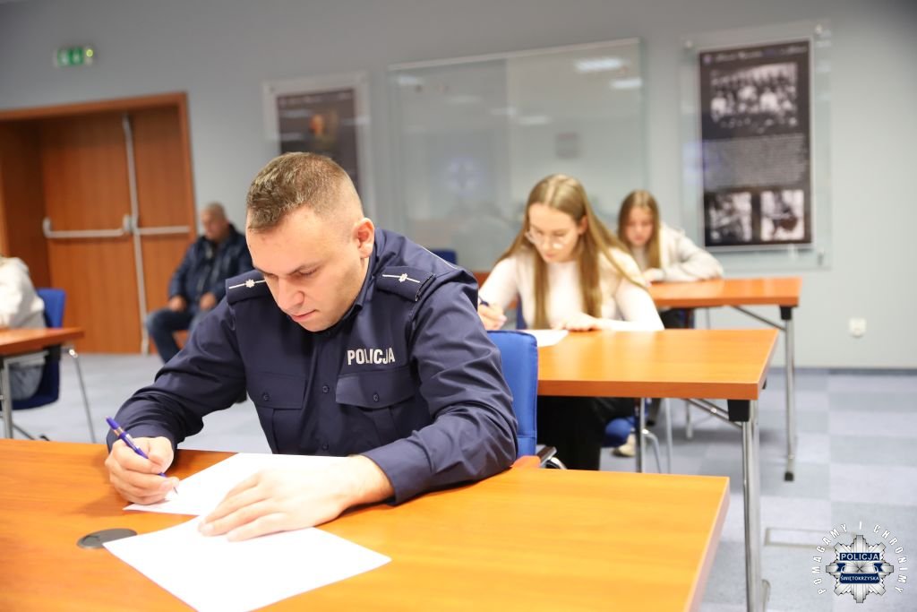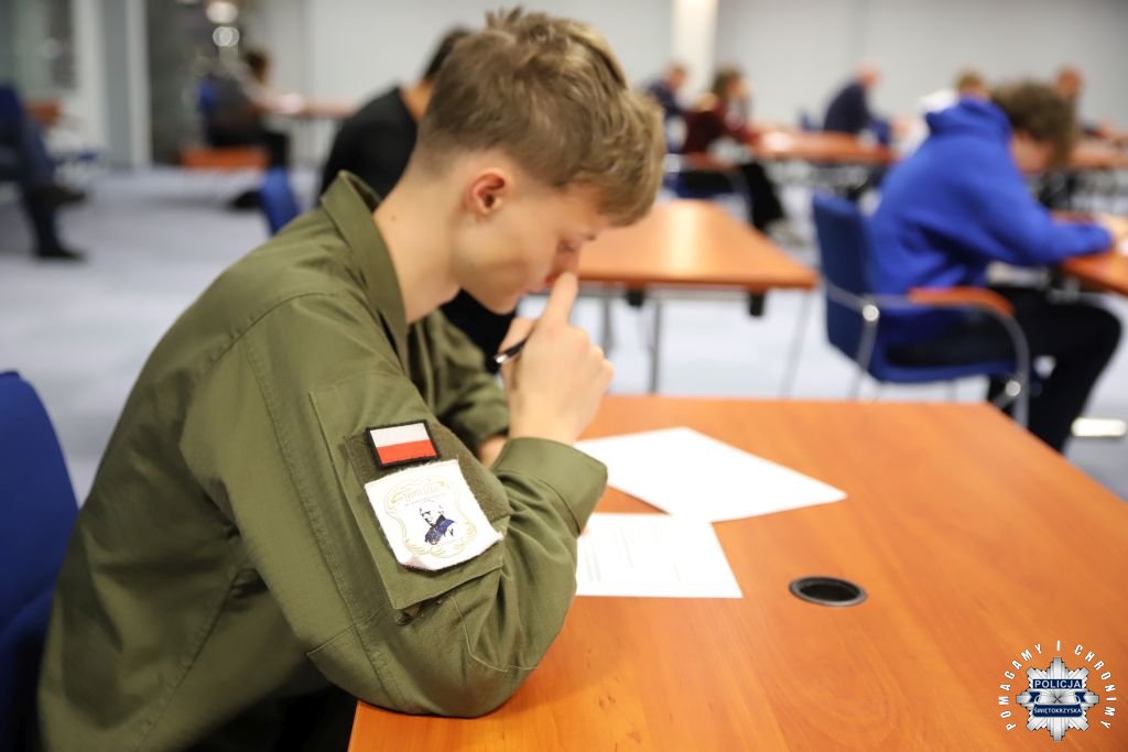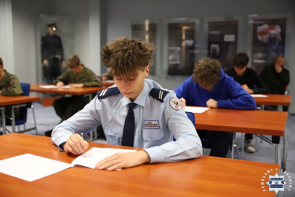 W zeszły poniedziałek na Sali Narad im. mjr Jana Piwnika „Ponurego” do zmagań zasiadło 26 uczestników. Wśród uczniów szkół średnich znalazło się 5 policjantów. Test składał się z 25 pytań zamkniętych oraz dwóch otwartych. Aby być w gronie najlepszych, należało wykazać się znajomością historii Policji Państwowej II RP, posiadać informacje o patronie świętokrzyskiej Policji oraz – co idealnie wpisuje się w obchodzoną rocznicę – znać historię kobiet w naszej formacji. Konkurs otworzył Zastępca Komendanta Wojewódzkiego Policji w Kielcach inspektor Jacek Cholewa. Zarząd Województwa Świętokrzyskiego reprezentowała Pani Anita Koniusz.